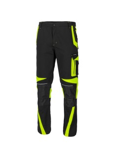 ✅ Nowoczesny design – czarne spodnie z kontrastowymi żółtymi wstawkami zapewniają profesjonalny wygląd i zwiększoną widoczność.