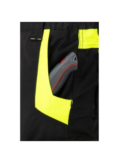 ✅ Nowoczesny design – czarne spodnie z kontrastowymi żółtymi wstawkami zapewniają profesjonalny wygląd i zwiększoną widoczność.